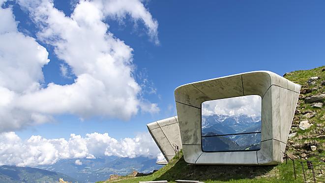 Majestically located on Kronplatz at 2275 metres above sea level, the MMM Corones is a tribute to traditional mountaineering, an art that was indelibly shaped by Reinhold Messner. This unique structure, designed by Zaha Hadid, embraces the horizon with its unmistakable presence and offers spectacular views.