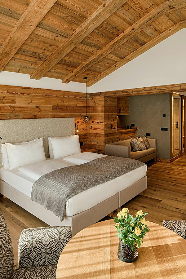 Our hotel in Corvara, just a few steps from the ski slopes, allows easy access to the Dolomiti Superski, the ski area with 12 ski areas, 450 lifts and 1,220 km of slopes. The ski lifts can be easily reached in five minutes on foot or alternatively by ski bus, which stops just 50 metres from the hotel. After a day on the slopes, you can return directly to the hotel's ski room and end the day with a touch of comfort and practicality.