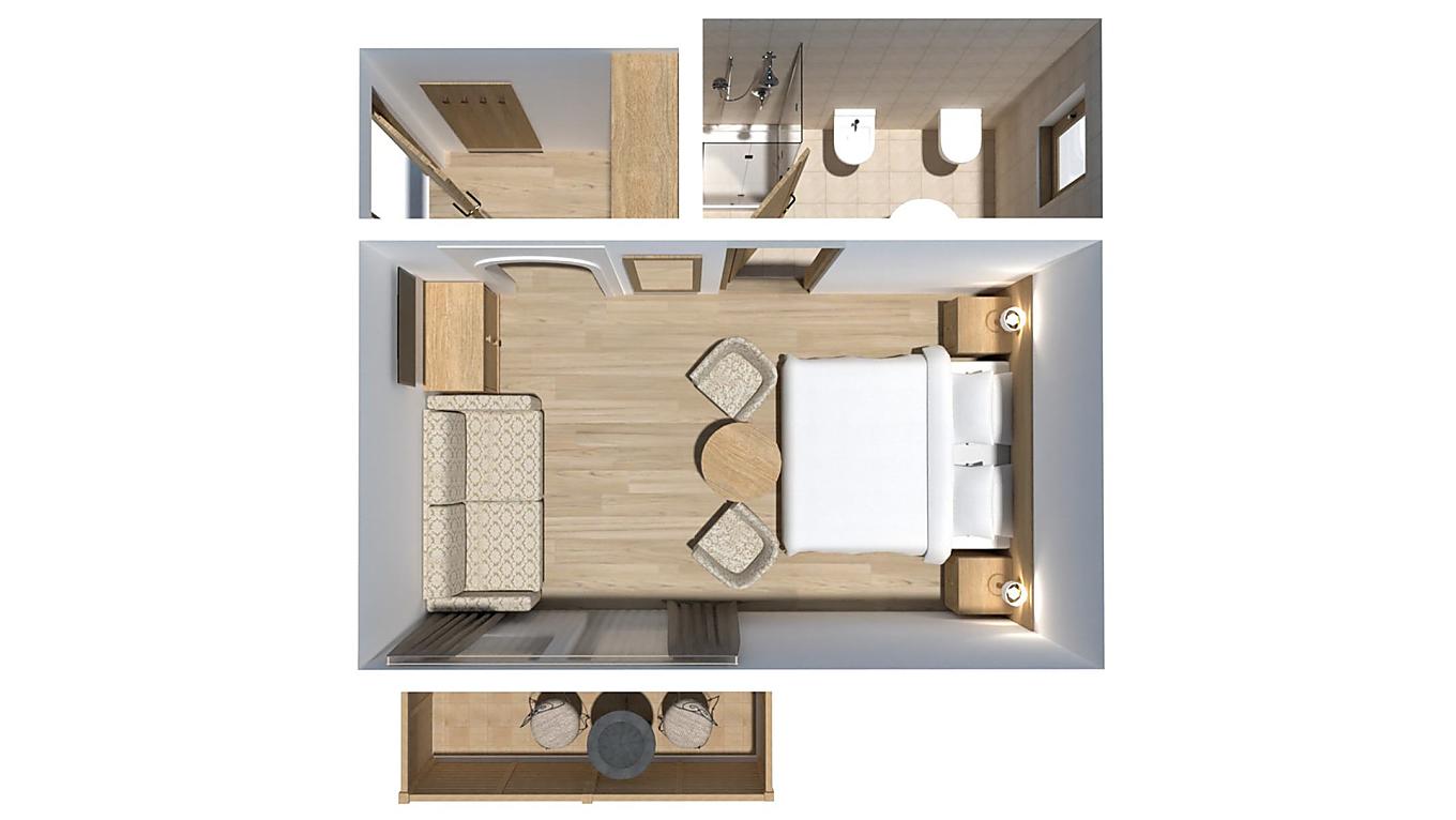 Le nostre camere Comfort sono esposte ad est, con vista sul Gruppo del Sella e il Passo Gardena, oppure a nord, con vista sulla montagna del Sassongher.