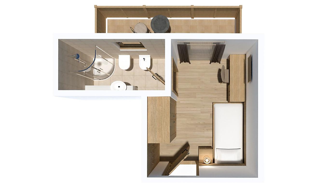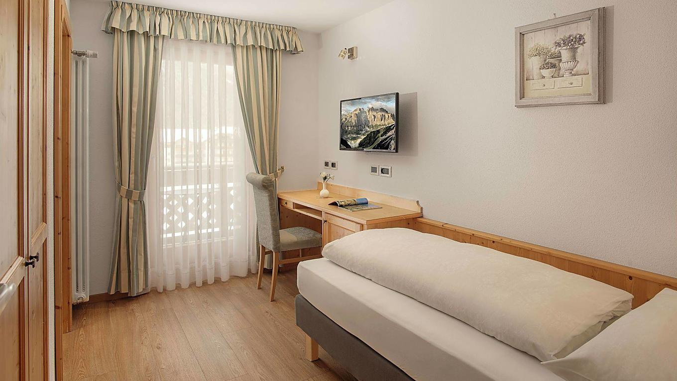 Le nostre camere singole si trovano al terzo e quarto piano e sono esposte a nord con una bellissima vista sul Sassongher.