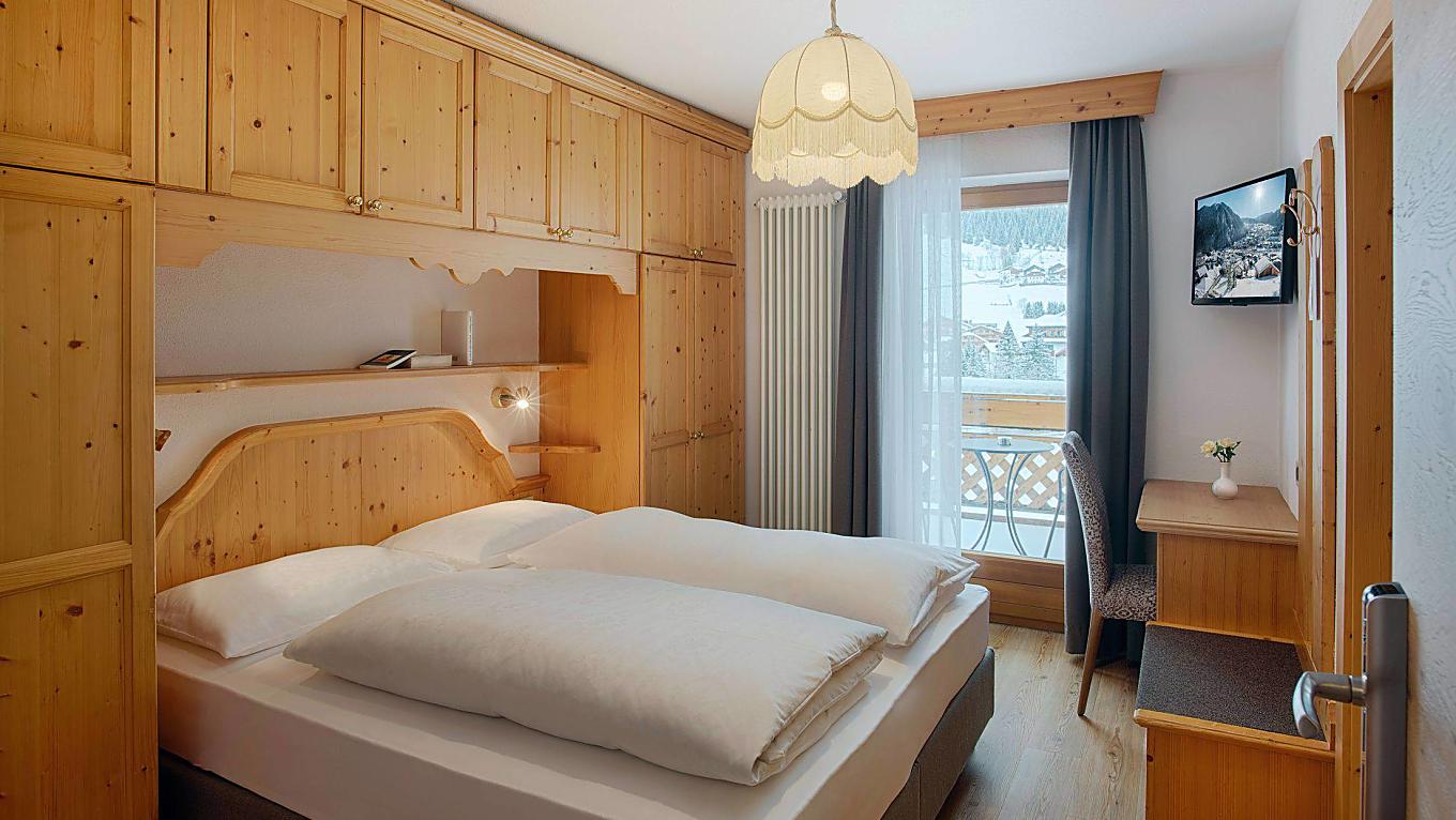 Le nostre camere Standard sono esposte a nord e hanno una bellissima vista sulla montagna del Sassongher.